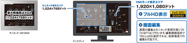 フルHD対応で大画面・高解像度の画面表示が行えるため、モニタッチでは1画面に入りきらなかった情報も表示できます。